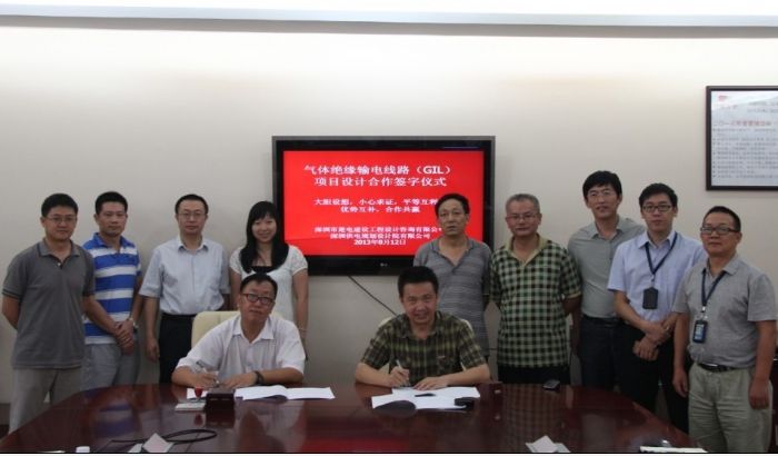 2013年8月12日,我公司领导与专业技术人员代表共同参加了与深圳供电规划设计研究院有限公司举行的气体绝缘输电线路(GIL)项目设计合作签字仪式。